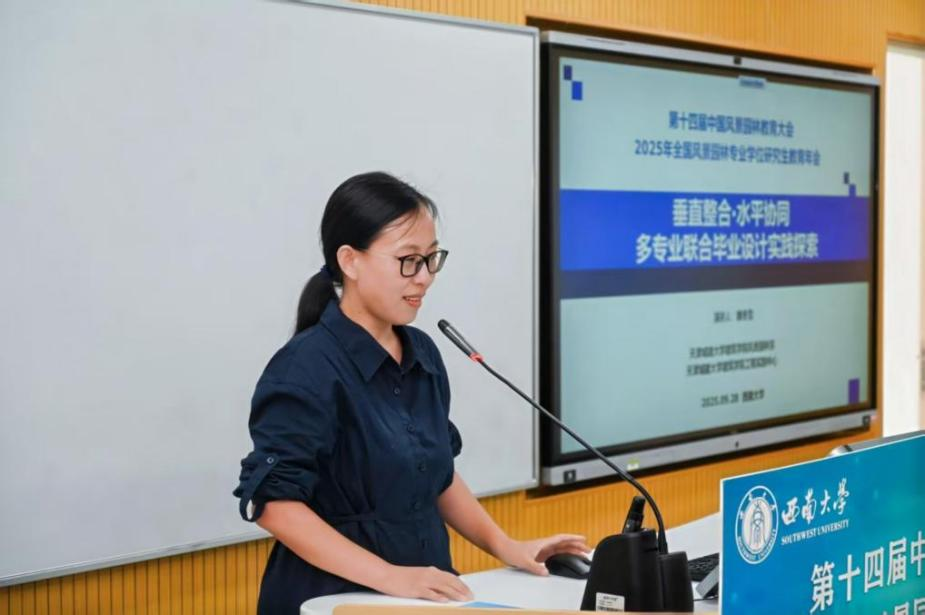 同时,Beat365官网建筑学院风景园林系李鹏波、吴军、霍艳虹、魏冬雪四位教师还参加了第十四届中国风景园林教育大会暨2025年全国风景园林专业学位研究生教育年会的系列会议。其中,魏冬雪老师在“分论坛3:产教融合论坛”中,代表Beat365官网建筑学院工程实践中心与风景园林系以“垂直整合·水平协同:多专业联合毕业设计实践探索”为题作报告。魏冬雪针对传统教学与真实需求脱节的问题,提出“垂直整合”(本硕贯通)与“水平协同”(跨专业融合)的双轨教学改革路径,并以“大运河和美乡村”毕设为例,阐述该路径如何促进“产教融合”与“赛教互促”,最后还结合学生反馈,展望风景园林教育新生态。