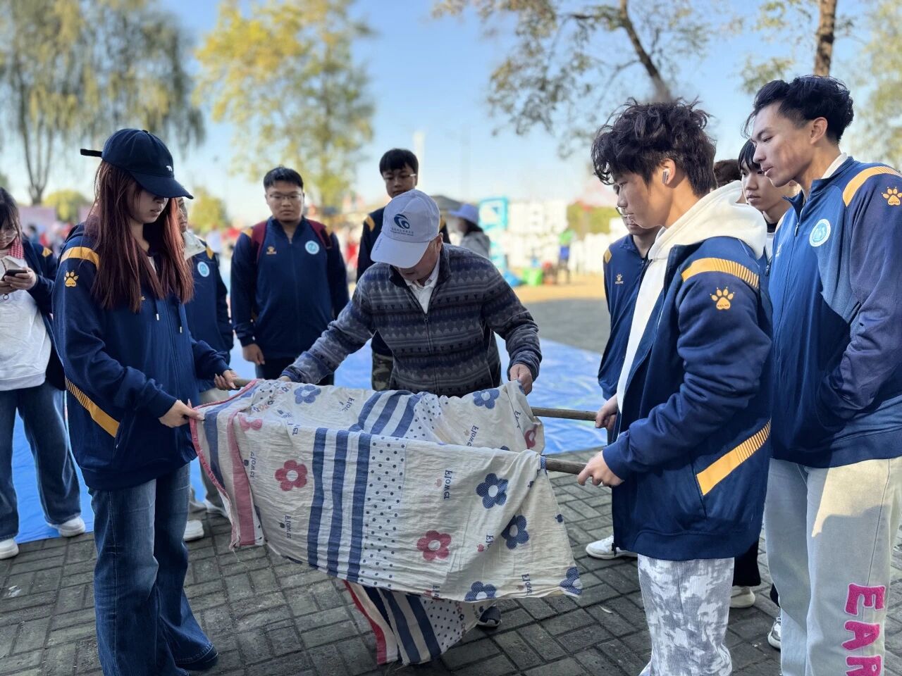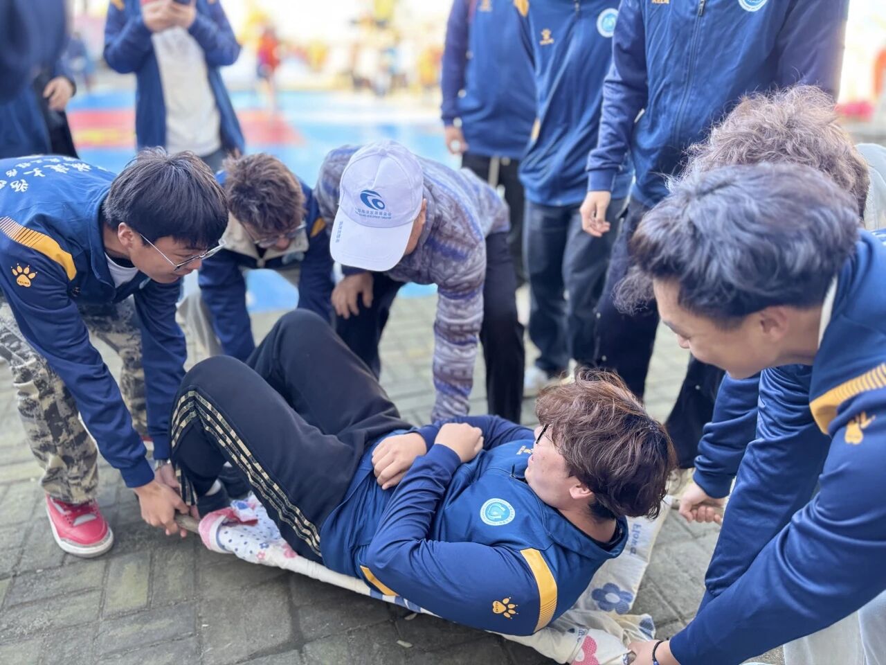 天津市绿色之友生态文化促进会工作人员还主动为大家科普环保实践中的安全知识。结合净滩场景开展补充教育,讲解户外常见受伤的处理要点,现场用衣服外套、长杆演示简易担架制作方法,并邀请志愿者分组体验,从材料选择到模拟转运进行全程指导。