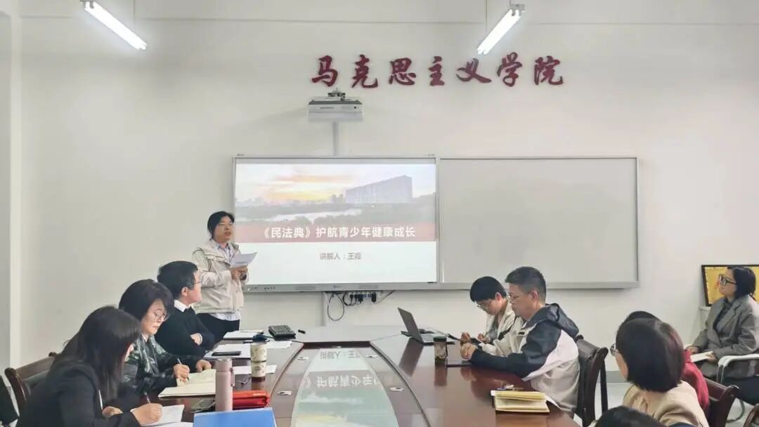 马克思主义学院教师王霞为师生代表带来一场题为《‘民法典’护航青少年健康成长》的专题讲座。王霞曾挂职天津市民族中学德育副校长,拥有丰富的青少年法治教育实践经验,讲座分为两个篇章:“守护我们一生的民法典”和“身边的民法典”。前一篇章深入浅出地讲解了《中华人民共和国民法典》的编纂历史、立法背景、关键阶段以及核心原则,让师生们深刻理解了《中华人民共和国民法典》“以人民为中心”的立法精神,以及其如何全方位保障人民的美好生活。后一篇章聚焦青少年普遍关心的热点问题,如“对校园霸凌说‘不’”“老人摔倒该不该扶?”“自愿参加竞技比赛,意外受伤了怎么办?”等,通过生动鲜活的案例,以案释法,引导师生树立正确的法治观念。