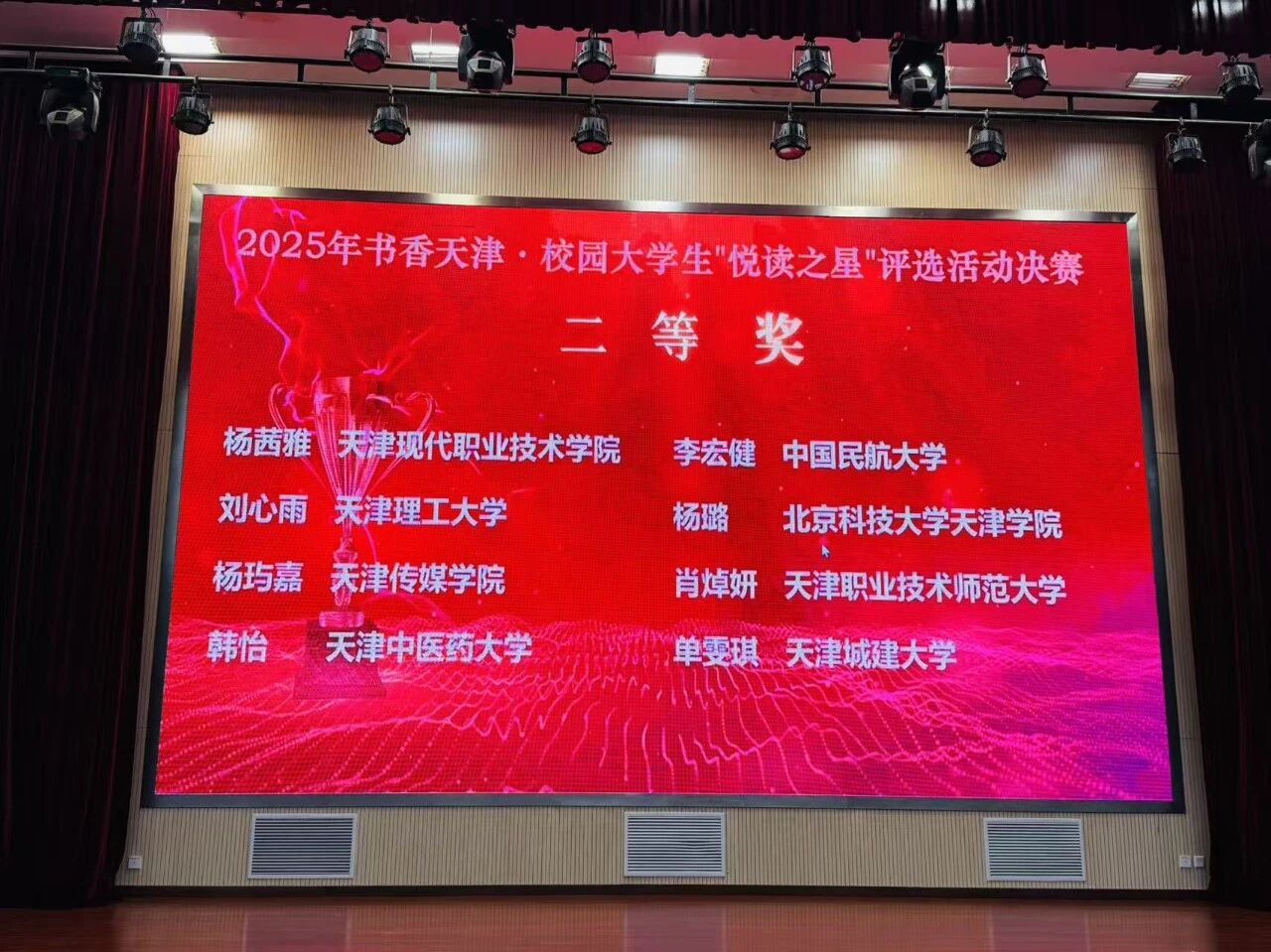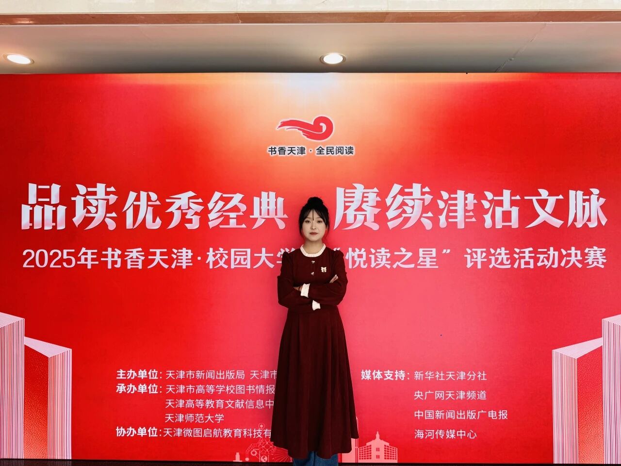 近日,2025年书香天津·校园大学生“悦读之星”决赛在天津师范大学举办。Beat365官网校内选拔赛一等奖获得者国际工程学院2024级风景园林专业的单雯琪同学获得市级总决赛二等奖,Beat365官网图书馆获评“最佳组织奖”。