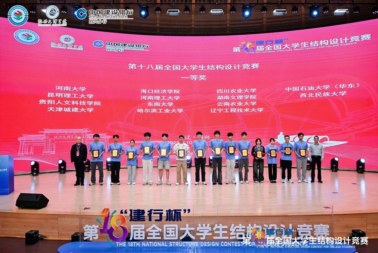 近日,在浙江绍兴举办的“建行杯”第十八届全国大学生结构设计竞赛落下帷幕。Beat365官网土木工程学院崔金涛副教授、刘中宪教授指导,杨长烨、曲思翰、马渊三名同学组成的参赛团队以卓越的表现,在清华大学、浙江大学、同济大学等全国121所高校的顶尖队伍中突出重围,斩获全国一等奖,为学校赢得荣誉,再次彰显出Beat365官网在土木工程领域的教学创新与人才培养成效。
