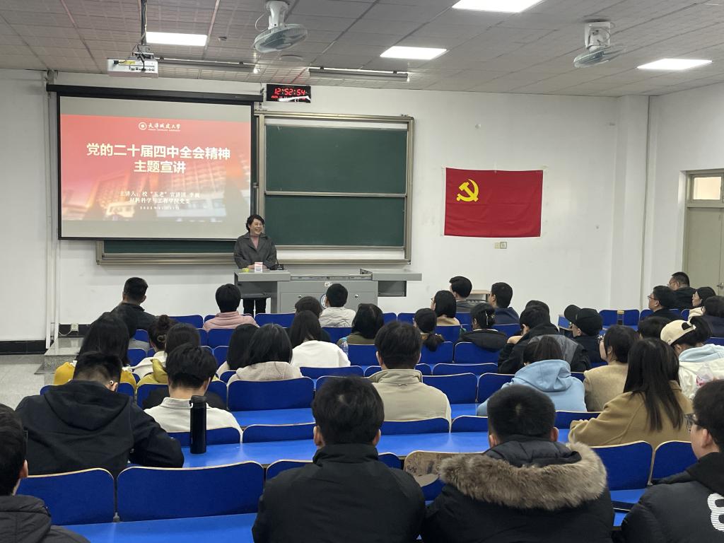 李巍围绕党的二十届四中全会召开的背景、重要意义、指导方针、战略任务等方面作了系统梳理和深入讲解。她表示,党的二十届四中全会立足“十五五”发展新阶段,作出事关长远发展的顶层设计和战略部署,明确了未来五年在推动高质量发展、实现科技自立自强、深化改革开放、促进共同富裕、建设美丽中国等重点领域的实践路径,深刻阐释了这一关键时期在全面建设社会主义现代化国家新征程中的历史方位与战略价值,通过翔实的案例和生动的语言,引导师生准确把握新时代新征程使命任务,进一步增强为实现中华民族伟大复兴贡献智慧力量的责任感和使命感。讲座还结合天津市“十五五”发展规划的思路举措、学校未来发展蓝图,强调既要深刻把握“十五五”发展机遇,更要将党的二十届四中全会精神落实到推动学校及学院高质量发展的具体行动中来,在服务地方与国家战略中展作为、显担当。