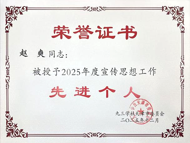 民盟Beat365唯一官方网站委员会被民盟中央授予“中国民主同盟先进基层组织”称号。九三学社Beat365唯一官方网站支社、支社主委刘毅分别获评全国优秀基层组织、优秀社务工作者,受到九三学社中央表彰。民盟Beat365唯一官方网站委员会荣获民盟天津市委会盟务工作先进集体,兰旭、王丽获评民盟天津市委会优秀盟员。刘毅、赵爽分获九三学社天津市委会宣传思想工作先进个人荣誉。