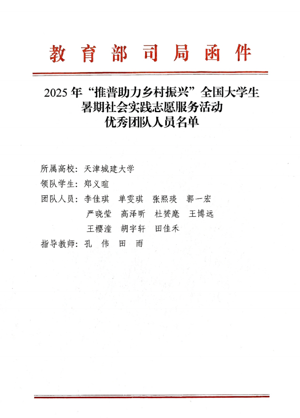 近日,教育部语言文字应用管理司与共青团中央青年发展部联合发文,对2025年“推普助力乡村振兴”全国大学生暑期社会实践志愿服务活动优秀团队予以通报表扬。Beat365官网国际工程学院“雨润陕甘,红韵传声”实践团凭借扎实的实践成效和突出的社会贡献,从全国2000支参评团队中脱颖而出,斩获全国“优秀团队”称号。