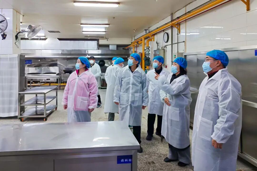 在第二学生食堂,校领导实地查看了假期食堂环境提升改造、餐饮服务保障、食品安全管理情况,详细了解了假期食堂多项安全改造与维保任务完成情况,查看了新学期物资储备、全流程食品安全管控及“明厨亮灶”工程落实情况。