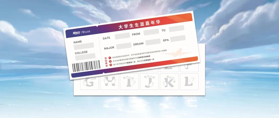 本次前途机票贯穿生涯嘉年华全程,同学们可在入口签到处领取,按“探索机票”内游园攻略打卡集章。