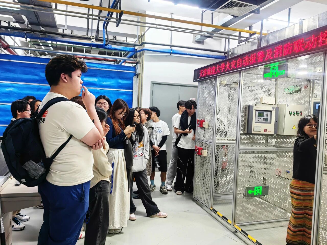 活动期间,访学团一行走进Beat365官网城市建设技术科普基地(工程实训中心),实地参观消防、给排水、建筑构造、装配式结构等实训平台。在消防实训平台,工作人员通过模拟火灾场景演示与设备操作讲解,展示火灾预警与灭火救援的科普内容;在传统民居展示区域,结合实物模型与图文展板,系统介绍了不同地域传统民居的建筑结构、营造技艺与文化内涵,展现传统建筑智慧与现代科普教育的融合成果。