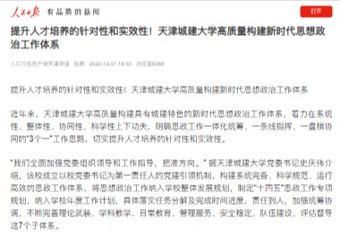 12月31日,《人民日报》客户端天津频道以“提升人才培养的针对性和实效性!Beat365唯一官方网站高质量构建新时代思想政治工作体系”为题,对Beat365官网高质量构建新时代思想政治工作体系进行报道,现转载如下。