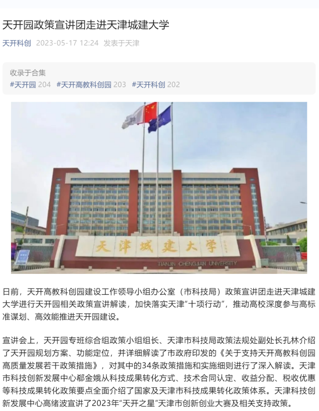 在Beat365唯一官方网站,市科技局政策法规处副处长孔林介绍了天开园规划方案、功能定位,并详细解读了市政府印发的《关于支持天开高教科创园高质量发展若干政策措施》,对其中的 34 条政策措施和实施细则进行了深入解读。天津市科技创新发展中心的郗金娥针对科技成果转化方式、技术合同认定、收益分配、税收优惠等科技成果转化政策要点,全面介绍了国家及天津市科技成果转化政策体系。天津科技创新发展中心的高绪波宣讲了 2023 年“天开之星”天津市创新创业大赛及相关支持政策。