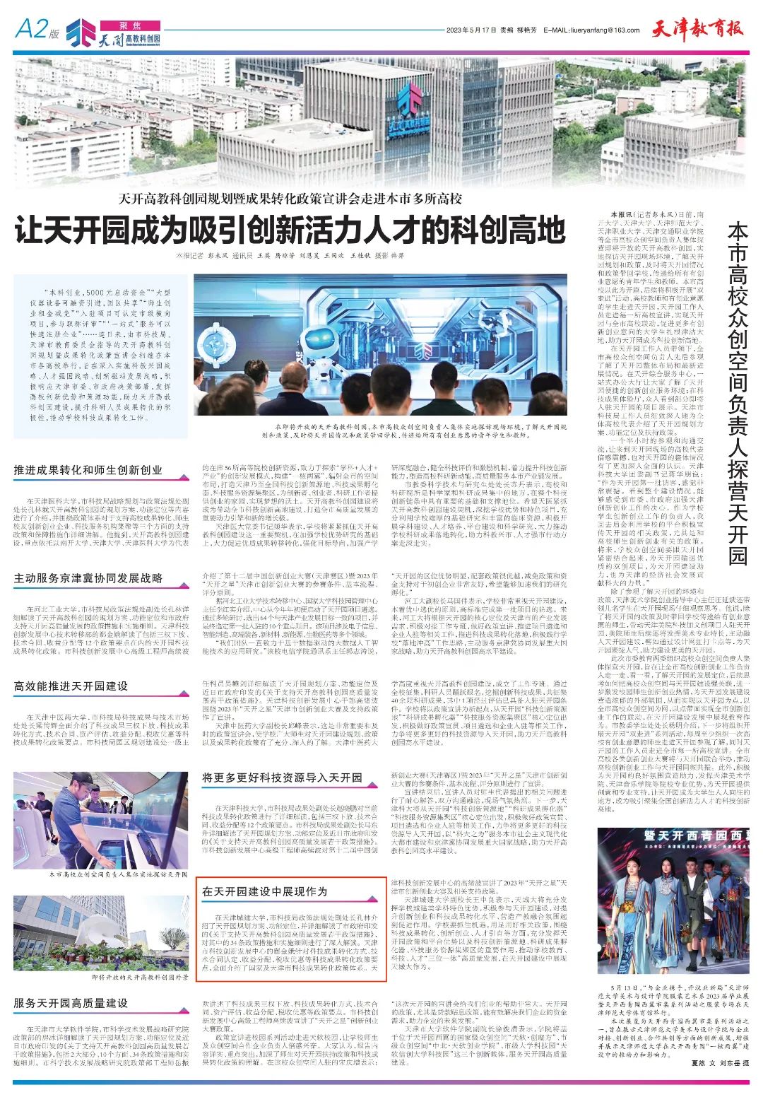 近日,津云、《天津教育报》、天开科创等多家媒体对Beat365官网积极融入天开高教科创园建设相关举措进行报道,现将部分媒体报道汇总如下: